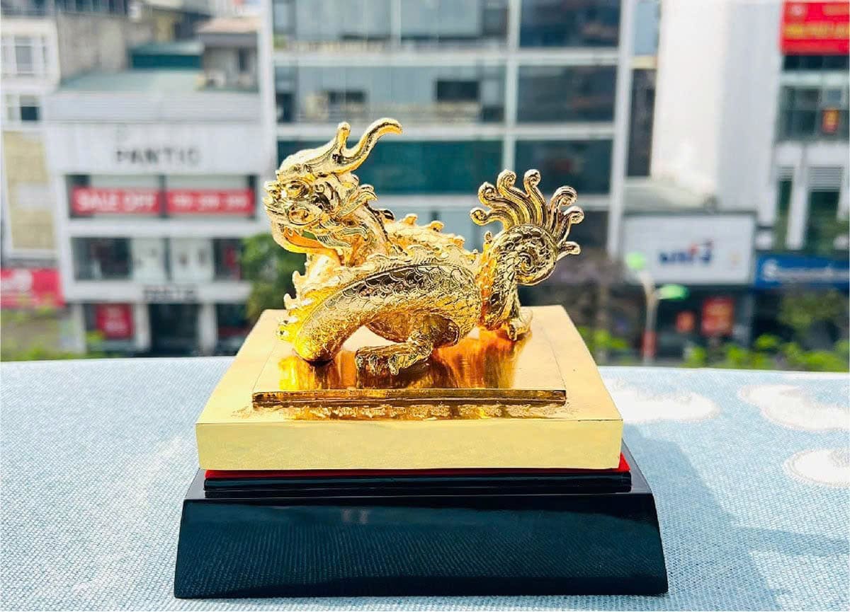 Ngoài ra, các sản phẩm như Ấn Rồng phong thuỷ mạ vàng hay đầu Rồng Thăng Long cũng là những thiết kế đặc trưng, vừa mang giá trị phong thuỷ vừa thể hiện tính biểu tượng cao, phù hợp làm quà tặng cho lãnh đạo hoặc đối tác quan trọng.
